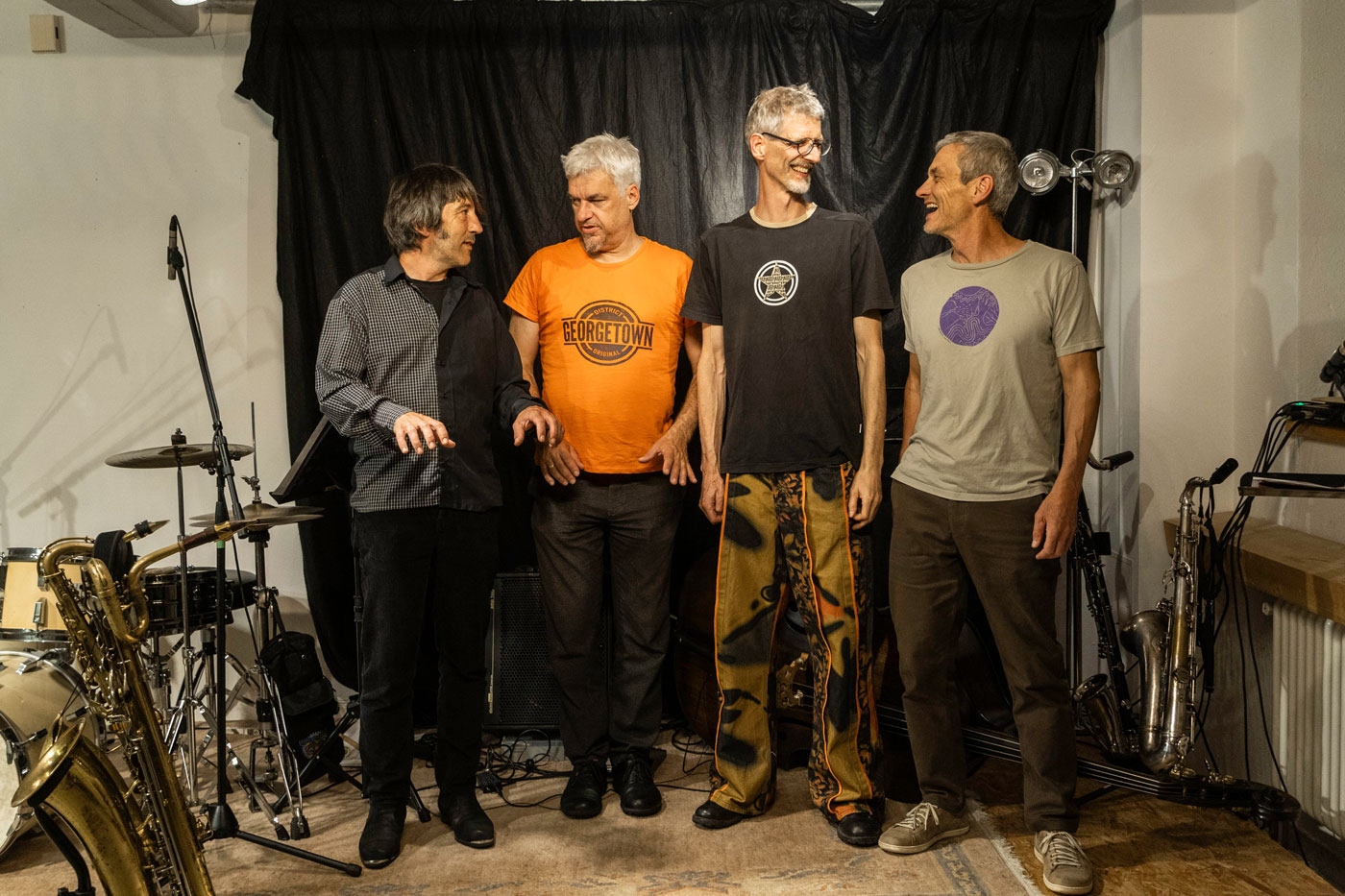Zusammen entfachen sie eine explosive Chemie: anarchische Improvisation, „twisted“ Funk, die Dringlichkeit des Punks und lebendiges rhythmisches Storytelling. Man stelle sich vor, der Wahnsinn New Yorks pralle auf Schweizer Free-Improv und einen zümpftigen Bayern – um sich dann gemeinsam in einem Aufruhr aus Klang, Narration und theatralischem Chaos zu verlieren.